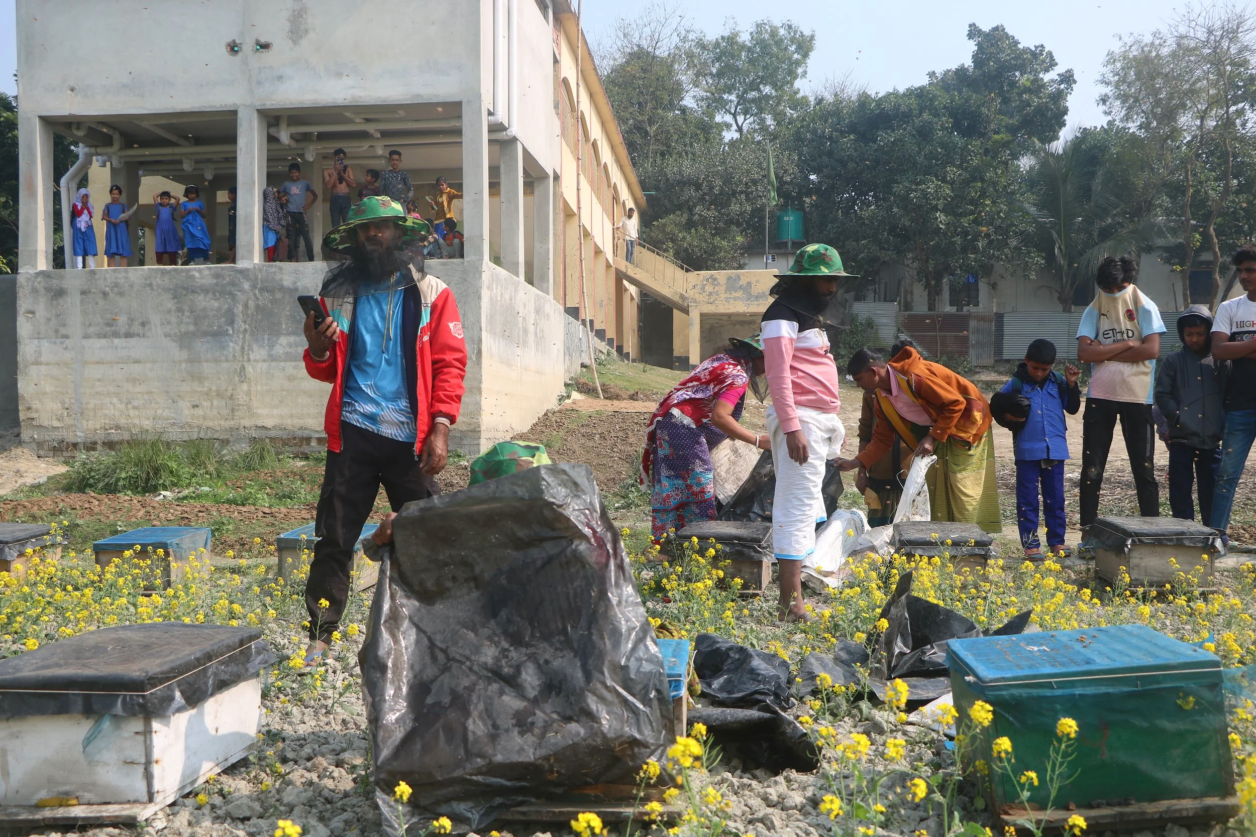 Families receive 5-day professional training on modern apiculture, honey extraction, hive management and safe handling practices, plus ongoing mentorship and monitoring.